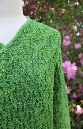 Marsk is a pullover that can be worn with no ease or with positive ease. Marsk has a nice texured lace all over pattern, I-cord V-neck and the pullover is worked from the bottom edge and up. The pullover has long sleeves (the yoke is worket in one piece / raglan construction).