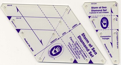 This is the diamond and triangle set that many quilters have asked us for. This set fits with the squares and triangles in Sets A and B to make the Storm at Sea block. Sets A and B have been in production since 1995 and we're excited to have this companion set in the line because now we can use it, too! :)\n\nCut the diamonds and triangles needed for the rectangular units in Storm at Sea blocks in three sizes. See sizes above.The same diamond-and-triangle unit is used in many other block designs, too. Instructions include how to cut the pieces and make the diamond-and-triangle units, along with guidelines for bed size quilts. The instructions do not include yardage for specific size quilts. (Good general instructions on how to figure yardage are included in "More Bang for the Buck"; the same method is used for any quilt design.)