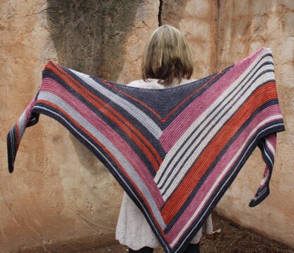 Marwood is a timeless curved triangle shawl in all garter stitch. Top down design, in 5 colors. This looks good on a man or woman.