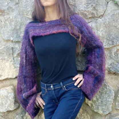 With this pattern you can make a cozy and versatile shrug/scarf that thanks to the laces on the sleeves can be worn in many different ways.