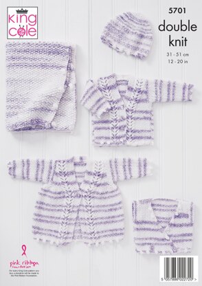 Matinee Coat, Cardigan, Crossover, Waistcoat, Hat and Blanket Knitted in King Cole DK - 5701 - Downloadable PDF