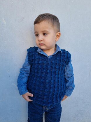 Matrix Vest is a simple pattern you can knit for your lovely child. Its beautiful, cozy and trendy Vest. Its easy to knit using simple basic knitting stitches . You can use any worsted yarn that match the gauge. Its knitted bottom up.
