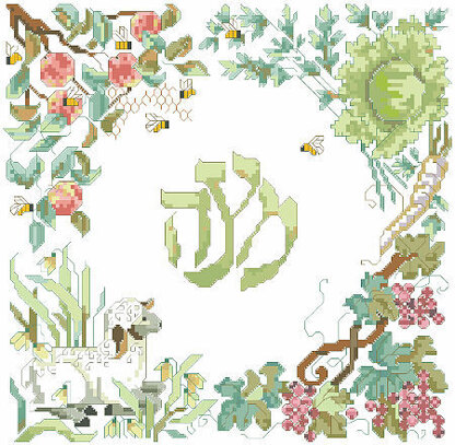 By Kooler Design Studio. Create this beautifully designed Matzah cover for an elegant addition to your Passover table. The Hebrew word for Matzah is encircled with symbols of spring and many of the meaningful elements from the Seder plate. This cross-stitched Matzah cover will be a cherished heirloom to be enjoyed year after year at your family Seder. large easy to read chart with instructions included for making the three pocket design.