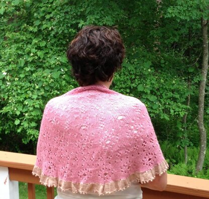 A lovely floral shawl featuring 4 different floral patterns - 4-petal, 6-petal, 8-petal and 12-petal with a ruffled edging.