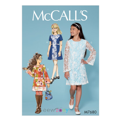 McCall's Girls' Princess Seam Dresses with Contrasts M7680 - Sewing Pattern