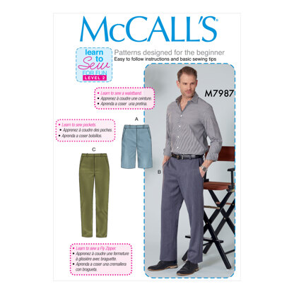 McCall's Men's Shorts and Pants M7987 - Sewing Pattern est un modèle de Couture Intermédiaire par McCall's, disponible au format Patron papier et comprend des instructions en Anglais, Français, Espagnol. Super amusant à réaliser, ce modèle pourrait être votre prochaine œuvre d'art !