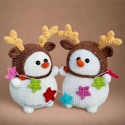 This crochet tutorial includes detailed written instructions, helpful tips, and over 70 step-by-step photos showing the crochet process. The pattern features minimal sewing: the head and body are crocheted as a single piece, while the legs and arms are joined with single crochet as you work. All that’s left is to attach the nose, and sew the antlers and button onto the bonnet.