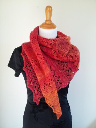 This asymmetrical shawlette is worked tip to tip with easy lace panel insertions and a simple lace border detail worked along one side, inspired by meandering creks that cut across a meadow - designed to use just one skein of 'Entropy' a handspun look yarn, it is easily customizeable and can be made to any size you wish (instructions included) It's also a beautiful way to show off your favorite handspun!