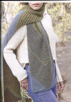 This pattern first appeared in issue number 168 of “Knitting Magazine” This garter stitch scarf is basically a one row pattern, changing colours to form the stripe pattern, whilst carrying the non working yarn up the side of your work.