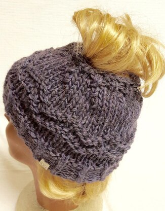 Messy buns are the rage right now for men and women and my daughter needed a hat for hers, so here's my version. Using Cascade Pure Alpaca: holding three strands together.