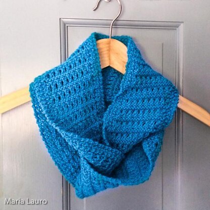This cowl is a quick knit using worsted weight yarn. The sample shown is Berocco Vintage in "Pool Party," knit on US 7 needles.