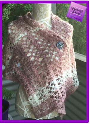 Mended Fences is a delicate shawl comprised of simple shells and lovers/solomons knots.