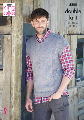 Mens Waistcoat and Tank Knitted in King Cole Homespun DK - 5800 - Downloadable PDF est un modèle de Tricot Intermédiaire par King Cole, disponible au format PDF téléchargeable et comprend des instructions en Anglais. Super amusant à réaliser, ce modèle pourrait être votre prochaine œuvre d'art !