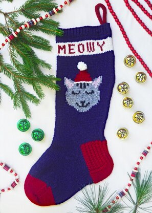 “Meowy Christmas” is an adorable Christmas stocking that you’ll enjoy knitting, and your family will enjoy seeing on the fireplace. It’s knit in a modern (yet still classic) style. A full alphabet is included so you can knit any name you wish into the top.