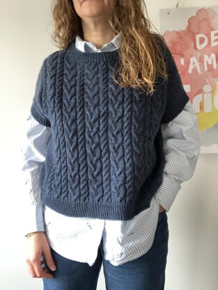 Meren est un pull tricoté en jersey avec un panneau de torsades sur l’avant.
