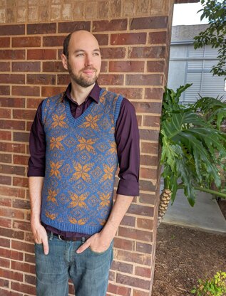 This is a pattern for a slip-over/tank/vest worked from the bottom up and in the round with steeks (over the armscyes and front neck).