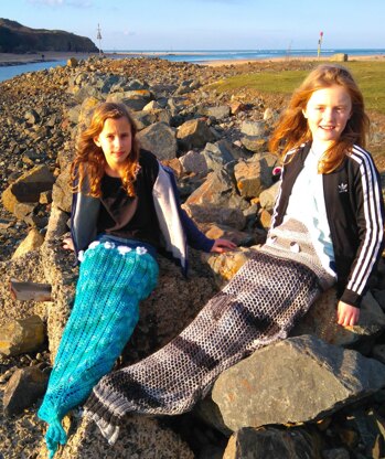 Knitting pattern for pretty and cute mermaid and shark tail sleeping bag/snuggle sack.
