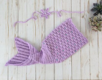 If you have never tried beaded crochet, this is a great project to try. The shell pattern makes it easy to incorporate beads into the fabric, creating a beautiful effect. This mermaid cocoon and headband set can be used for baby’s first photo shoot, or given as a baby gift.