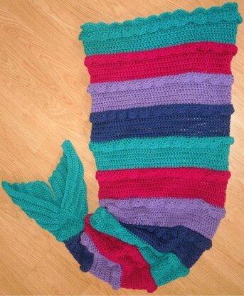 The mermaid tail blanket is one size around (approximately 42"/107 cm at the widest part) and is suitable for small children as well as adults; the length can be custom-made to suit.