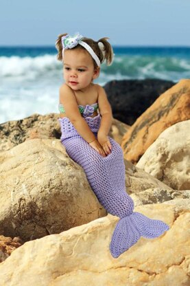 Crochet Mermaid Tail Pattern with Bikini Bandeau Top and Headband in 8 sizes! This mermaid tail pattern has two designs, depending on the age of your baby. The newborn size is made as a one-piece tail with a bodice that covers the infant's chest. This way you do not have to fuss with a separate top for a photo shoot. The other sizes have a separate bikini top. It is very easy to interchange these designs if desired. The Mermaid Tail is an adorable photo prop, that makes a perfect gift. Make matching sister or cousin mermaid tails. The outfit is made with worsted weight yarn using simple crochet stitches (sc, dc). The pattern has detailed instructions with pictures of each step for additional help. The pattern that is appropriate for an advanced beginner. Pattern comes in 8 sizes: Newborn, 3, 6, 12, 24 months, 3T, 4T and 5T