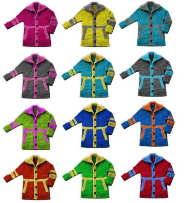 Messico e Nuvola is a cute jacket with contrasting color trims and pocket details for boys and girls. As a top-down jacket it is easy to adjust length to fit any child. Worked in a bulky but buttery soft yarn, this jacket will keep your child warm but yet allow freedom of movement. The fold back cuffs give it plenty of growing room. Have fun in picking the colors with your kid!