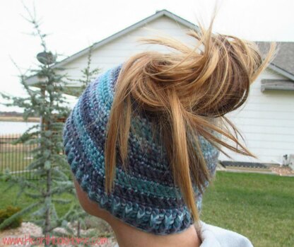 The perfect Messy Bun Beanie, great for moms and young ladies that are looking to add a little pizzazz to their otherwise messy outfit. Heck, this is me 85% of the time, so I had to whip one up myself in order to get the pattern perfect!