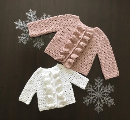Mia Front Ruffle Cardigan is a fashionable cute cardigan, perfect for wearing over special event dresses or daily casual wear in all seasons. It can be made with cotton yarn for wormer seasons or wool yarn for colder seasons.