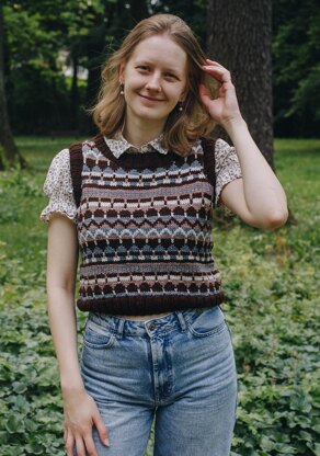 There is a warning that comes with this vest. There are lots of ends to weave in on completion! The pattern includes symbol charts, which can be used to add your own choice of colour.