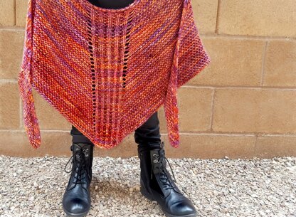 Middle Path is a triangular shawl knit top-down in bulky weight yarn. It is designed to be a meditative knit with an easily memorized repeat and plenty of garter stitch.