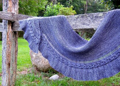 This reversible crescent-shaped shawl features gentle ruffles, a pretty cabled braid, and a touch of lace. The main body is knitted in garter stitch from the top down. After a few quick set-up rows, every row of this section is the same, making it simple and portable ~ an ideal on-the-go project. The second part of Midnight Craving is easily memorizable and addictive, alternating a quick ruffle with a brief cabled section. Each ruffle and cable will feed your craving for progress, while tempting you to knit just a bit more!