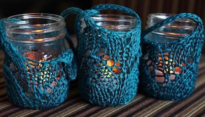 These lanturns are a quick knt that's perfect for a unique housewarming gift or something to add to your Christmas repitoire that's a little different! Each lantern requires approximately 50y of yarn. Midnight lights should only be used with elecronic tealights, as many types of yarn are either melt or are flamable.