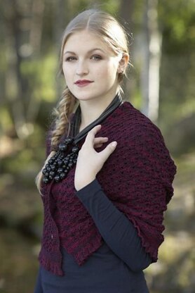 Wollmeise has a large fan base and the phone glows when Loop receives a new delivery. Intense, glowing colors in a yarn with a fantastic stitch definition. All you can do is to become a member of Wollmeiseholics Anonymous on Ravelry. I chose the Lace yarn in a popular color reminiscent of beetroot in a lace pattern called Milanese Lace. The shawl can be buttoned up to be worn as a shrug or a vest. The Ruffled Bell Border is knitted at the top before bind off and scrap yarn is removed from cast on to knit border after completion at the bottom.