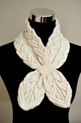 Milky White Cables Scarf ( Keyhole / Ascot / Pull-Through / Vintage / Stay On Scarf Knitting Pattern )