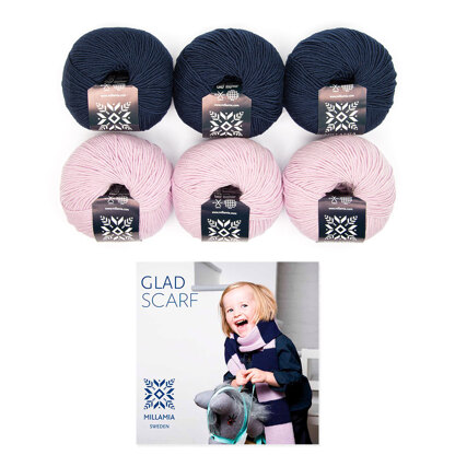 Kit de laine pour projet de l'écharpe Glad en MillaMia Naturally Soft Merino. Super fun à réaliser, ce patron pourrait être votre prochaine œuvre d'art !