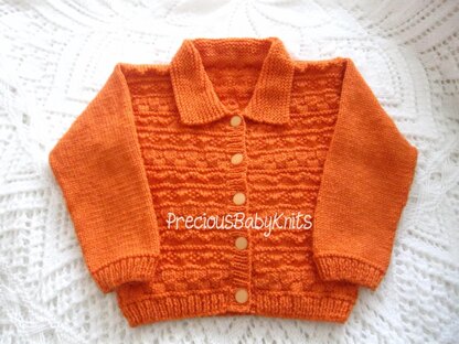 Requirements 4mm needles for DK size 4.5mm needles for aran size 5 x 15mm buttons 330g of aran 200g of DK