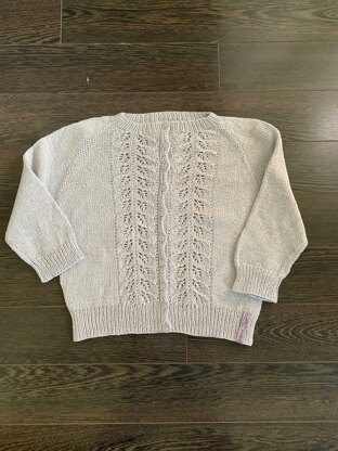 This is a cardigan with half sleeves and waist long. Length approx: 43-43-45-45-47-47cm Sleeve length : 23-23-25-25-27-27cm You will also need 8-10 markers and 7-11 buttons 12-15mm It is knitted in double thread of Coast, and that is calculated in the pattern.