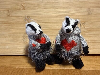 This is a knitting pattern for a mini badger wearing his St Valentine’s Day Jumper/Hoodie. He can hide a Ferrero Rocher or Lindor type chocolate inside his tummy or can be stuffed and used as a hanging decoration.