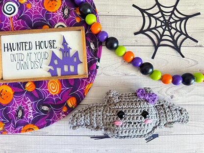 Our finished Mini Bat Kawaii Cuddler® amigurumi is 3.5″ x 8.5". Hook size, yarn choice, and crochet tension will affect each individual result.