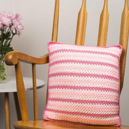 Sometimes, it’s the simplest of patterns that create the most effective pieces in your home. This stripey mini bean stitch cushion is quick and easy to make and is a great stash buster for your dk yarn