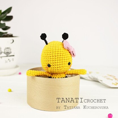 Mini bee – size 11 cm (4 in), if using sport weight yarn (Sport (12 wpi), 2: Fine).