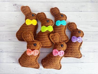 Our finished Mini Chocolate Bunny Kawaii Cuddler® is 7” x 4.5”. Hook size, yarn choice, and crochet tension will affect each individual result.