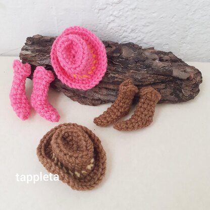 Crochet mini Cowboy / Cowgirl hat and boots pattern PDF. An interesting project for party decoration, earings, bag charm or keychain etc. Cool gift for Taylor fans "Cowboy like me", or country music fans. Size approx. Hat 2” (5 cm.) in diameter, boots 1 1/2" (4 cm.) This pattern is suitable for those who have crochet skills for beginners and know the magic ring, single crochet, hdc, dc, increase. Pattern is in standard American terms. You will need: - cotton blend yarn ( YarnArt Jeans), any yarn 4ply - hook B (2 mm.) - scissors, needle You are free to sell the finished item made from this pattern. PATTERN CAN"T BE SOLD!!! Happy crocheting!!!