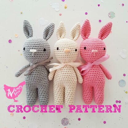 This is a pattern for an adorable mini bunny. Perfect for popping into an Easter basket or just the right size for a new baby.