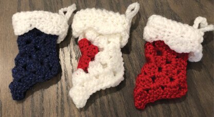 My third grade teacher made one of these for every student in her class, and had them hanging on the wall around the classroom. We each got a chance to go choose one and retrieve it from the wall. I was so excited to get the white stocking with the red center. It has hung on my Christmas tree every year since 1985. I recreated the pattern and modified it just a touch by adding a scalloped edge at the cuff.