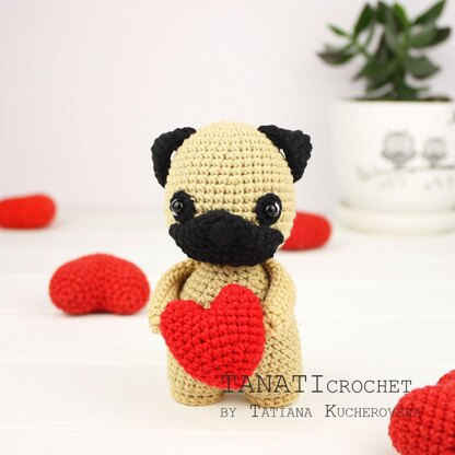 Mini Pug – size 12 cm (5 in), if using sport weight yarn (Sport (12 wpi), 2: Fine).