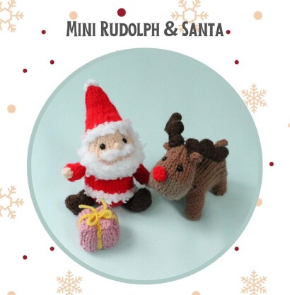 Finished size: Rudolph, 8cm long, Santa, 7cm high, gift, 2cm All parts are knitted flat and sewn up at the end. No circular knitting is required. Each toy is a good size to fit into a 10cm clear bauble. You only need small amounts of yarn, no more than 10g each. Feel free to use your stash.