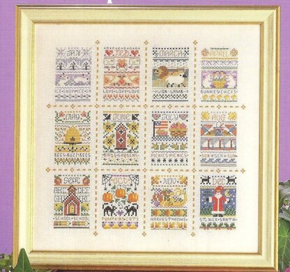 By Kooler Design Studio. If stitching a full size traditional sampler seems too daunting, try stitching 12 tiny samplers instead. These adorable and charming little samplers fit the seasons and each month of the year and look fabulous as a grouping consisting of all twelve. They would also make great birthday gifts, stitched up on cards, bookmarks or in small frames for that special friend.