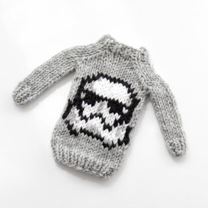 Visit a galaxy far far away by casting on this mini sweater inspired by galactic soldiers. The Mini Storm Helmet Sweater makes a great gift topper, holiday ornament, beer bottle cozy, or keychain, and it’s a great way to show off your favorite fandom!
