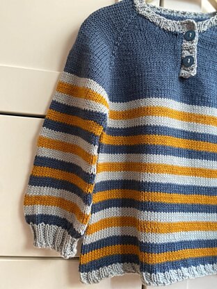 Stripes are fun and this little top down raglan sweater pattern has options to knit it with two, three, or even four colours! Minimus is knitted in sport weight and comes in seven sizes, from newborn to 24 months and is worked in the round. The neckline comes with a button band for easy dressing. Stitches for the neckline and the buttonband are being picked up at the end.