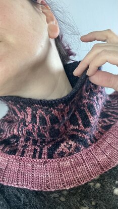 This cowl is best suited for a tighter knit, which gives it more structure and enhances the design. One size fits all. The floats have a maximum of 7 stitches, but are usually 5 or less.